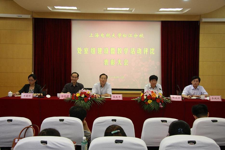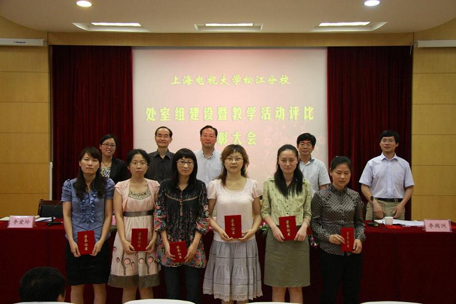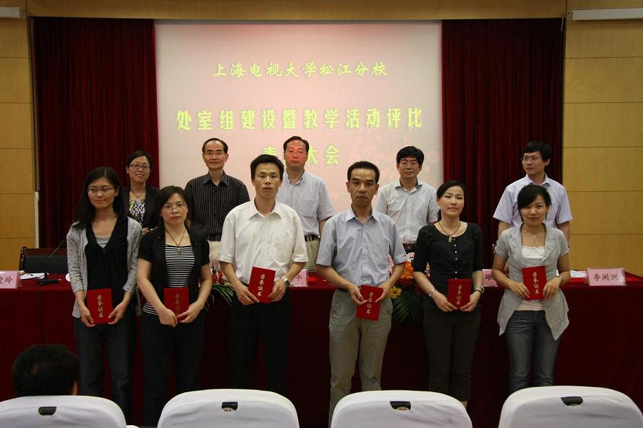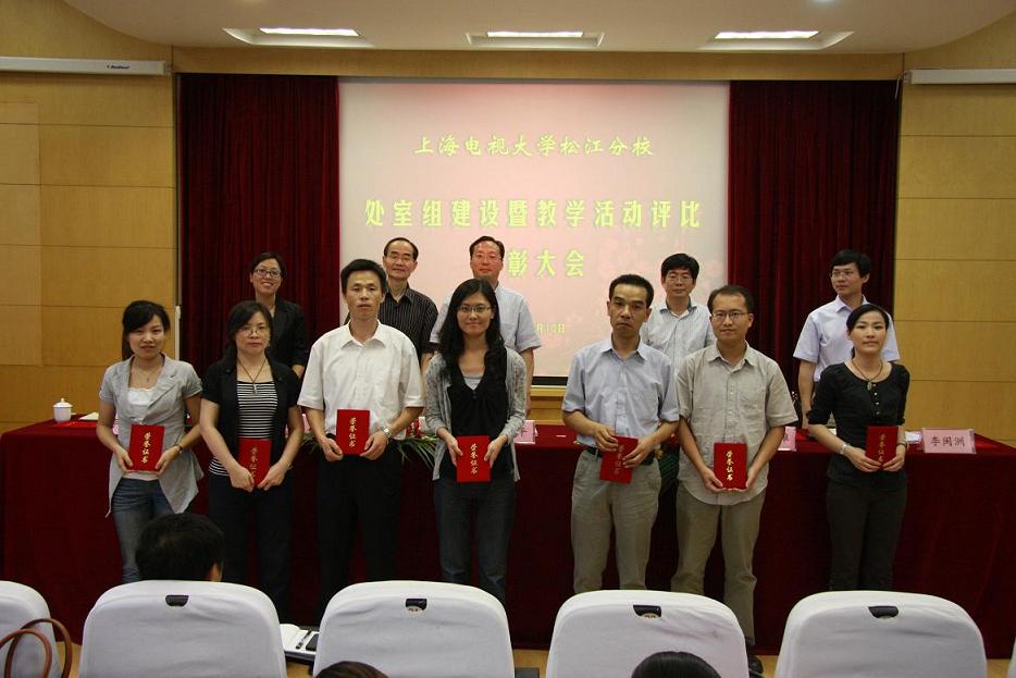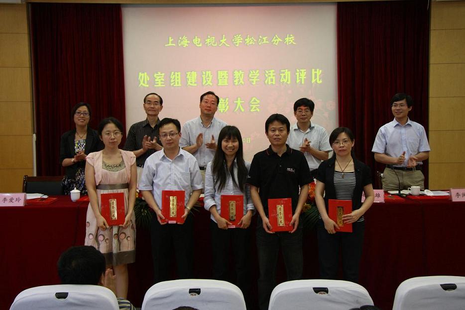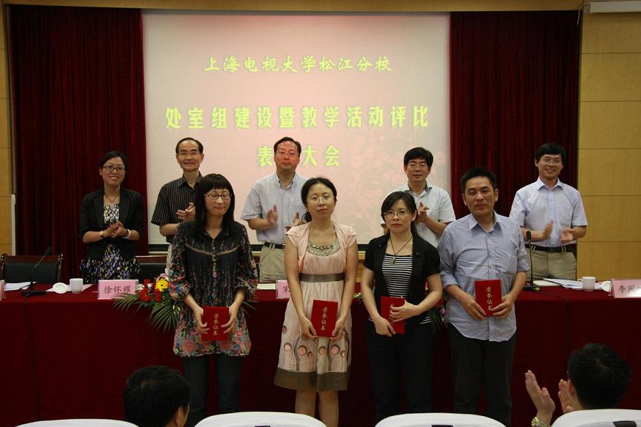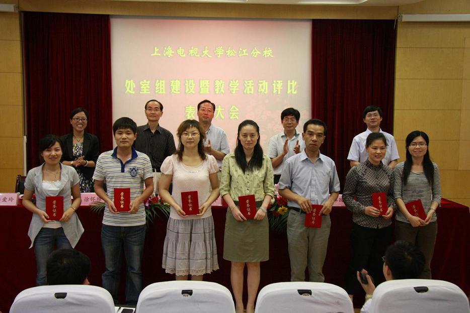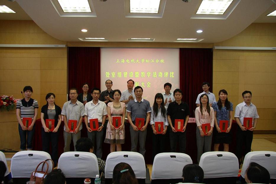 会上,学校领导班子为获奖的集体和个人颁奖。教务处、政教处和财经组代表获得表彰的处室组作了《做好教务工作要讲奉献精神》、《自觉发挥助学作用,为提升电大品牌服务》和《深化团队建设,提升教学质量》的经验交流