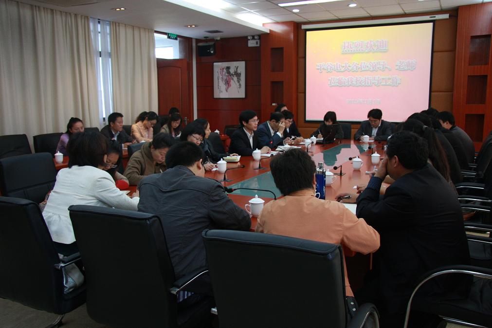 两所学校就电大招生工作、教师队伍建设、班主任管理与评价、远程教育教学管理与运行模式等方面进行了广泛交流。平谷分校建于1979年,是一所运用广播、电视、文字教材、计算机课件及网络等多种媒体手段进行现代远程开放教育的地方成人高等学校。目前有教学班四十八个,在校生二千二百余人。她在教学管理,办学模式,队伍建设等方面一直走在北京电大的前列,给我校留下了深刻的印象。