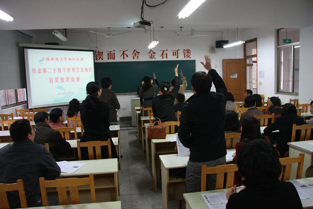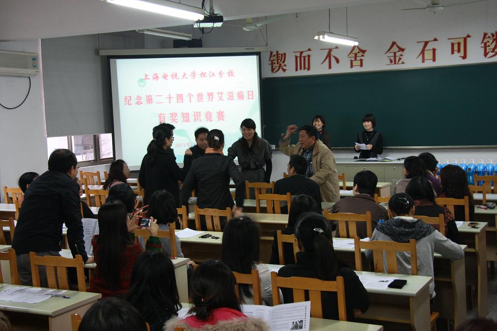 ?xml:namespace>2011年12月1日是第24个“世界艾滋病日”, 11月23日下午,我校举行了“纪念第24个世界艾滋病日”知识竞赛活动。本次活动由工会组织,全体教职员工参加了比赛,比赛采用抢答的形式,气氛热烈。 通过紧张的比赛,决出了一二三等奖数名。