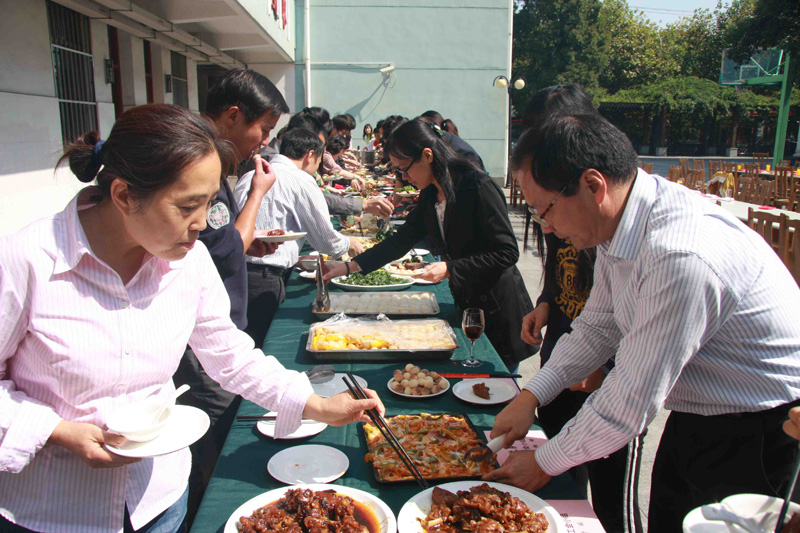 运动会前,排舞队的队员表演了四支欢快的舞蹈。运动会后,学校领导为摄影比赛和运动会获奖的老师颁发了奖品。全体教职员工沐浴在秋天和煦的阳光下,在冷餐会上品尝着美食和美酒,回味着运动会的场景,交流着感兴趣的话题,本次冷餐会增加了教职工们亲手烹制的中餐和西餐菜肴,受到了大家欢迎。这一天,教职员工都沉浸在和谐而欢快的气氛中。