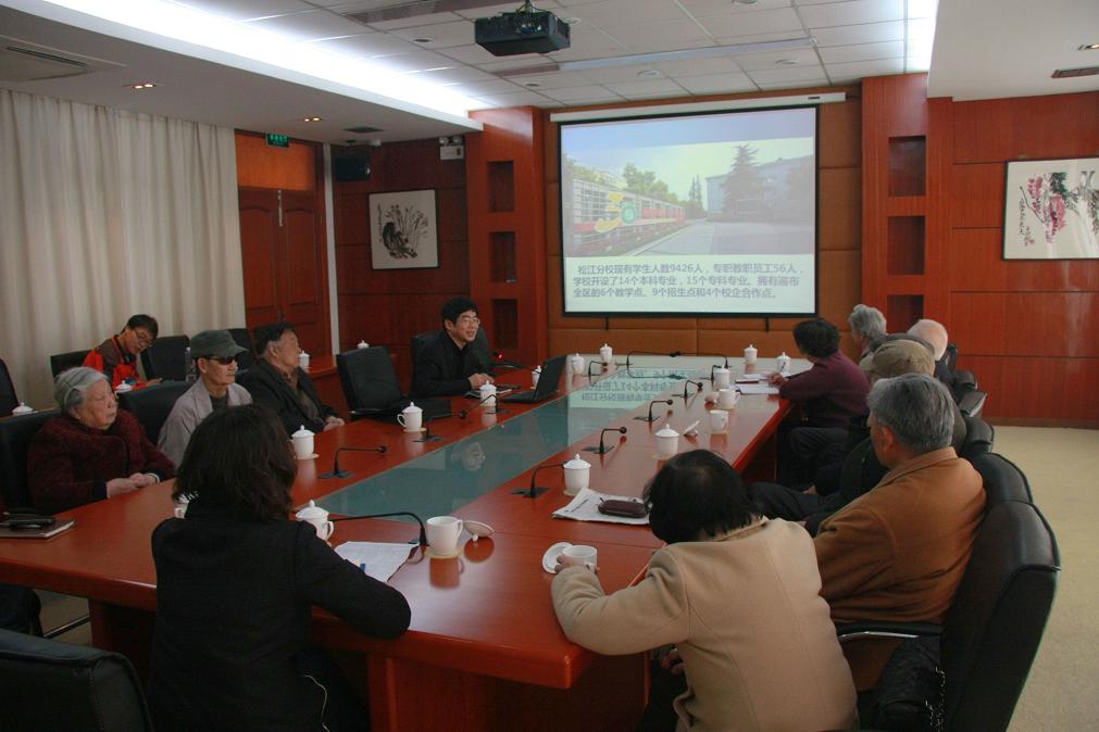 会上,宋庆平校长代表学校党政班子对离休干部们的到来表示热烈的欢迎,并对他们一直以来对松江开大的关心和指导表示了感谢。郑国雄书记从学校的内涵建设、校园文化建设、教育教学、学生工作、品牌宣传等方面的工作进行了全面的汇报。