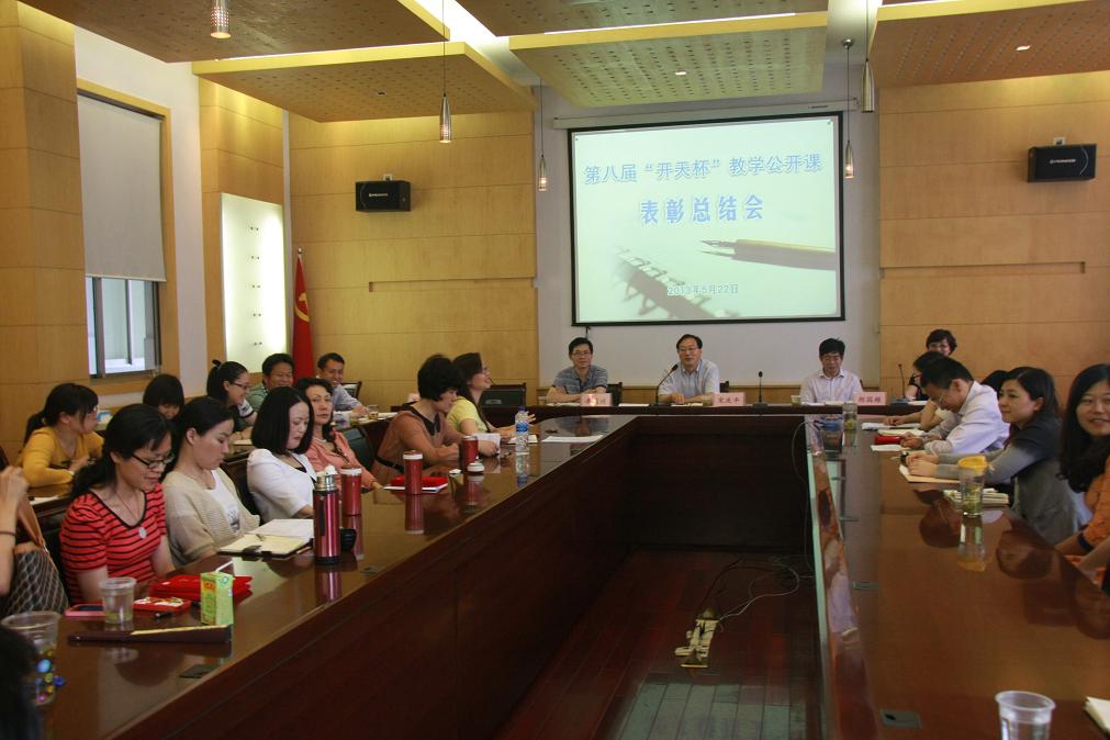 2013年5月22日下午,我校在三号楼四楼会议室召开第八届“开天杯”成人高校教师教学公开课表彰总结会,宋庆平校长、郑国雄书记和李闽洲副校长出席会议,全体教师参加了会议,会议由校长助理李爱玲主持。