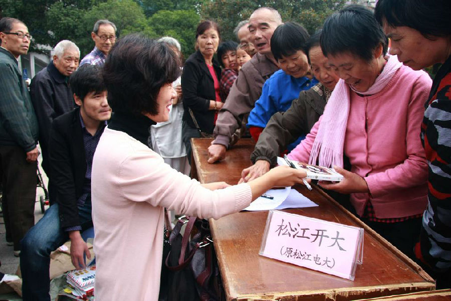 10月31日上午,松江开大积极响应松江区岳阳街道的倡议,参加了“助老、爱老、敬老”活动,推出了“赠书送健康”主题服务内容。早上8点刚过,就陆续有闻讯赶来的老年人来到开大开设的服务摊位前,领取开大为老年人送上的养生保健类的各种书籍,深受广大老年朋友的欢迎。