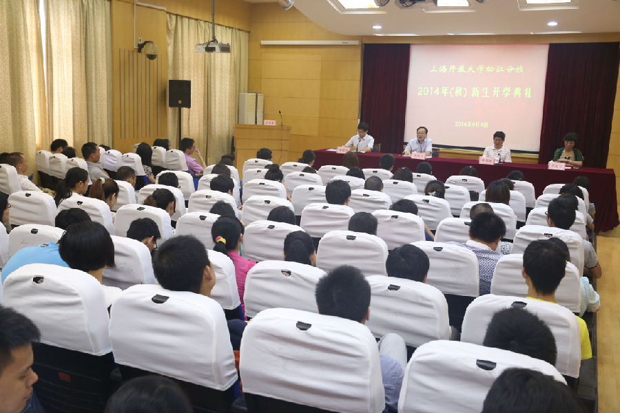 9月6日上午,松江开大2014年秋季新生开学典礼在三号楼阶梯教室举行。校长宋庆平,党支部书记、副校长郑国雄,校长助理李爱玲出席了开学典礼。2014级秋季本、专科新生1500多人参加了开学典礼。开学典礼由副校长李闽洲主持。