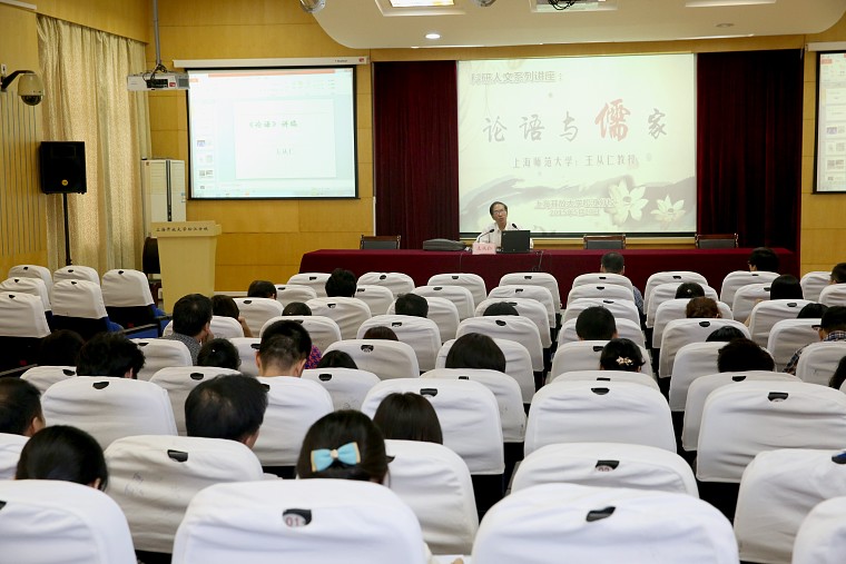 5月20日下午,上海师范大学中文系教授、上海市民俗文化学会副会长王从仁先生应邀到我校作了《论语与儒家》学术讲座。校长宋庆平,副校长李闽洲以及全体教职员工聆听了讲座。