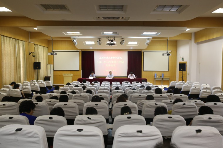 2015年6月26日上午,学校在三号楼四楼阶梯教室召开了本学期期末考务工作会议。学校领导班子成员出席了会议,全体监考老师和考务人员近100人参加了会议。会议由党支部书记、副校长郑国雄主持。