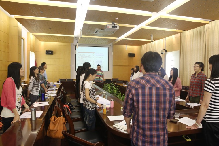 马力以问题为导向,采用了参与互动方式,重点带领老师们实践了如何科学发声,包括如何使用发声器官、如何用气等。讲座内容丰富,生动幽默,全体教师积极参与进行了发声练习,收到良好效果。