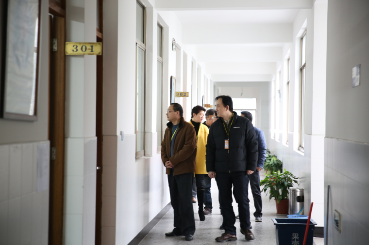 12月27日,上海开放大学蒋红校长在教育教学质量监督办公室主任王国清的陪同下,一大早就到松江分校巡视检查考试工作。