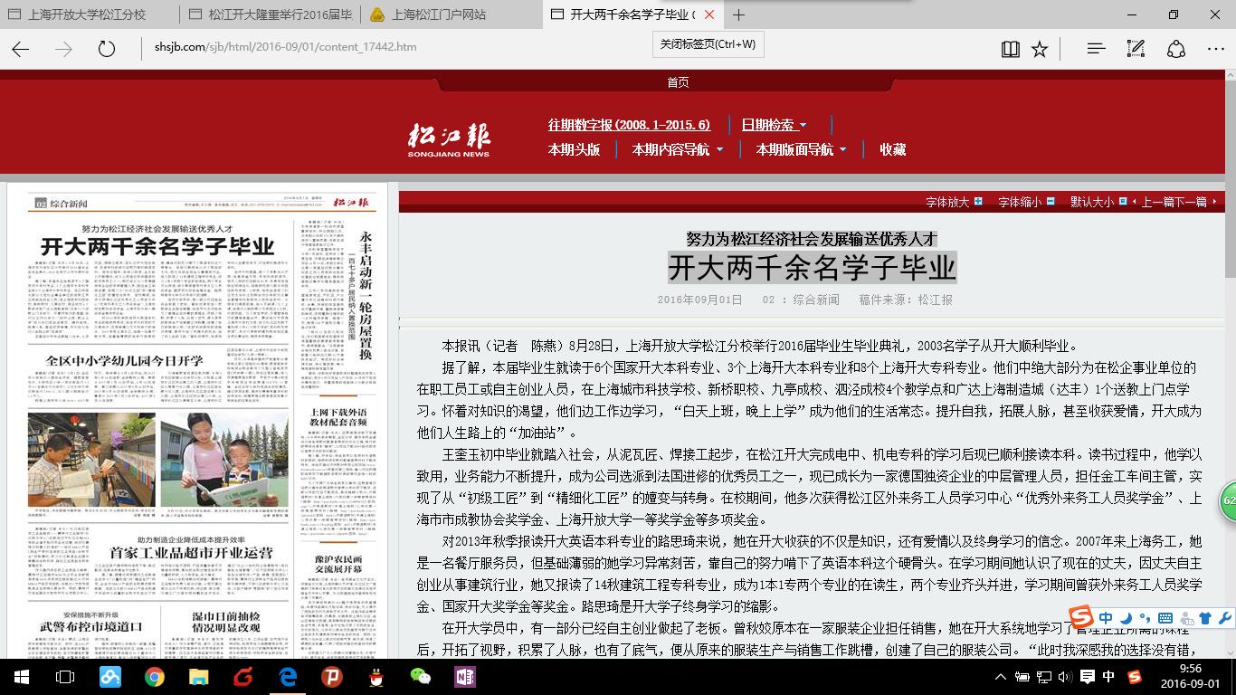 本报讯(记者 陈燕)8月28日,上海开放大学松江分校举行2016届毕业生毕业典礼,2003名学子从开大顺利毕业。