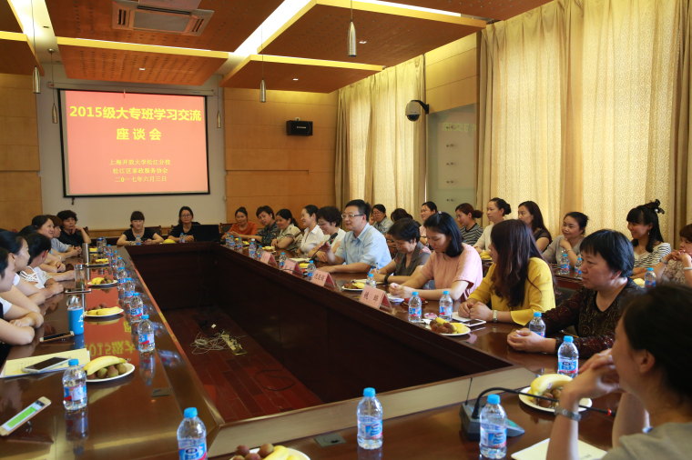 6月3日下午,2015级家政服务大专班在我校三号楼四楼会议室召开学习交流座谈会。松江区家政服务协会会长沈亚娟、松江开大校长周明出席座谈会。15级家政专业全体学员及部分教师参加座谈会。座谈会由校长助理李爱玲主持。