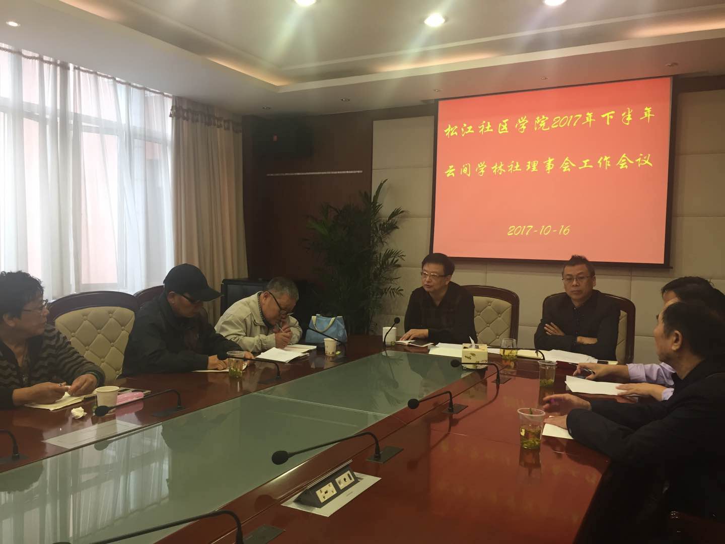 10月16日上午, 2017年下半年云间学林社理事会工作会议在松江区社区学院209会议室召开。上海开放大学松江分校校长、松江区社区学院院长周明、社教部主任李桂明、云间学林社理事会成员、云间学林社中山古韵文学分社成员及相关工作人员出席会议。会议由李桂明主持。