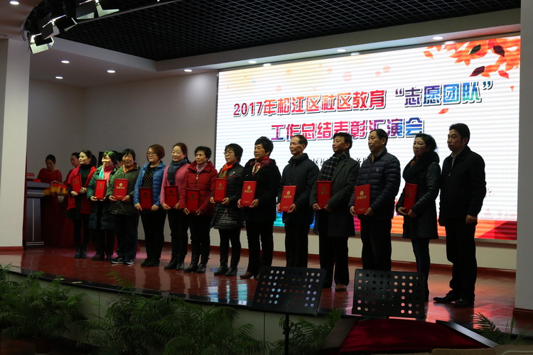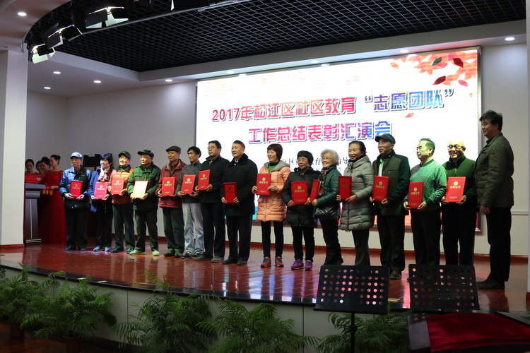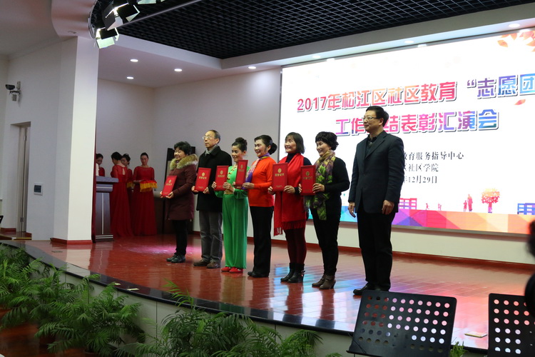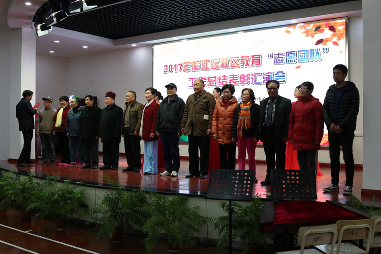 12月29日下午,2017年松江区社区教育“志愿团队”工作总结表彰汇演在区社区学院1号楼小剧场举行。
