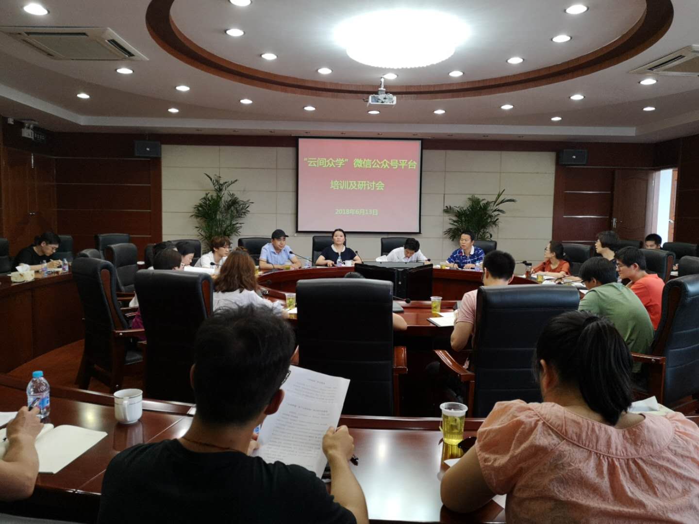 6月13日下午,“云间众学”微信公众号平台(以下简称“云间众学”)培训研讨会在松江社区学院4号楼305会议室召开,上海开放大学松江分校副校长、社区学院常务副院长沈利华、区教育局职成教科孙秀华、公众号栏目编辑、各街镇社区学校通讯员及相关工作人员出席会议,会议由社教部主持。