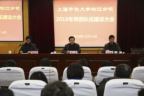 12月14日下午,我校召开2018年师资队伍建设大会。学校党政班子出席,全体教职员工参加会议。会议由副校长沈利华主持。
