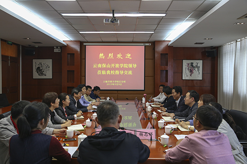 5月9日下午,云南开放大学保山开放学院孙正飞校长一行在上海开放大学办公室副主任朱震旦陪同下莅临我校进行交流。我校党总支书记郑国雄、副校长沈利华、教育局职成教科副科长方舫及相关职能部门负责人参加了交流。