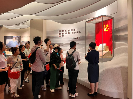 研学首站来到陈云纪念馆。陈云纪念馆是经中央批准建立的全国唯一系统展示陈云生平业绩的纪念馆,也是全国红色旅游经典景区,由主馆、陈云文物馆、铜像广场、陈云故居、专题展厅和文化创意街等组成。学员们驻足细看珍贵文献与历史照片,结合讲解深入了解陈云同志从乡野少年到革命先驱的成长历程,对他“不唯上、不唯书、只唯实”的务实精神和“个人名利淡如水,党的事业重如山”的思想境界有了更真切的感悟。