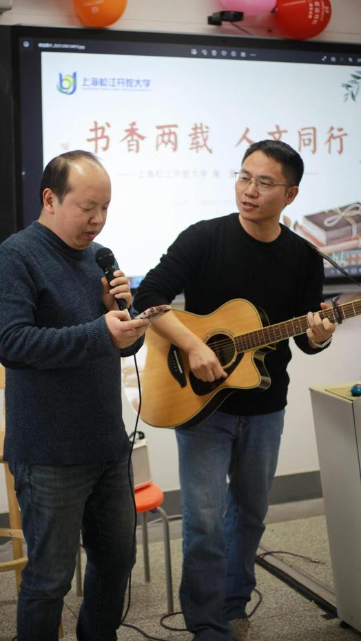 2025年12月10日,上海松江开放大学海・星读书社两周年庆祝活动在鲁班楼305教室温情启幕。活动以回忆分享、互动游戏、文艺表演等多元形式展开,展现了读书社两年来的成长轨迹与师生共读的浓厚氛围。