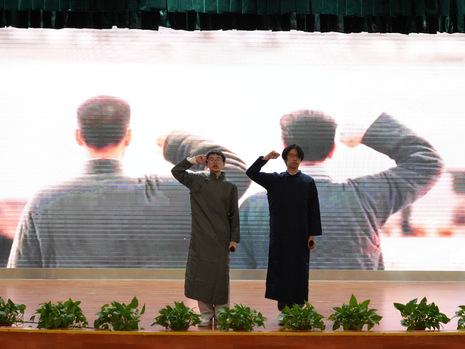 排练中最难的不是台词,而是情感。我开始翻阅守常先生的文章、书信,试图走进那个年代。站在舞台上,灯光亮起的那一刻,我不再是我。我说出的每一个字,都是百年前一个灵魂的呐喊。那一刻我忽然懂了,历史从未走远,它就在每一双眼睛的注视里,在每一颗仍然跳动的初心里。谢幕时掌声响起,我却久久不能抽离。在这时我觉得我不只是演完李大钊,而是在另一个时空感受那时革命的辛苦艰辛,演李大钊让我明白,有些角色不只是要“演”的,更是要用生命去靠近、用灵魂去承接的。正如黑夜的那一排蜡烛,在黑暗中点燃自己,只为照亮前路。