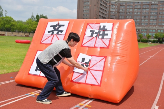 上午的趣味团队项目精彩纷呈,“巨型轮胎”“魔法汉字”“环游世界”“移形换影”“众星捧月”五大项目轮番上阵,现场呐喊声、欢呼声此起彼伏。